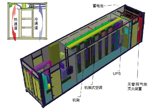 集裝箱式數(shù)據(jù)中心,外殼采用符合業(yè)界海運要求的工業(yè)集裝箱箱體,集成配電、監(jiān)控、制冷、機(jī)柜、布線、消防、安防等所有基礎(chǔ)設(shè)施子系統(tǒng),經(jīng)裝飾后可以滿足數(shù)據(jù)中心的性能及維護(hù)需求。內(nèi)部所有的部件以標(biāo)準(zhǔn)的工廠預(yù)安裝完成部署,快速完成生產(chǎn)。客戶僅需提供場地、電力和網(wǎng)絡(luò)即能獲得完整的數(shù)據(jù)中心。